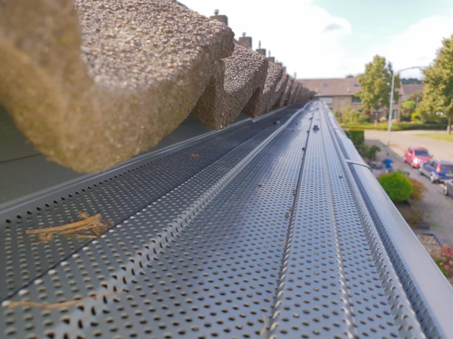Dakgootpreventie is een eenvoudig, maar superslim concept. Met een aluminium rooster over uw dakgoot voorkomt u verstoppingen van de waterafvoer door bijvoorbeeld bladeren, takken, mos of sneeuwophoping. Het kuisen van uw goten behoort tot het verleden en dakgootlekkage wordt beperkt tot een minimum. De bladeren, takken en mos blijven op het geperforeerde rooster liggen en waaien in een droge periode van het rooster af.